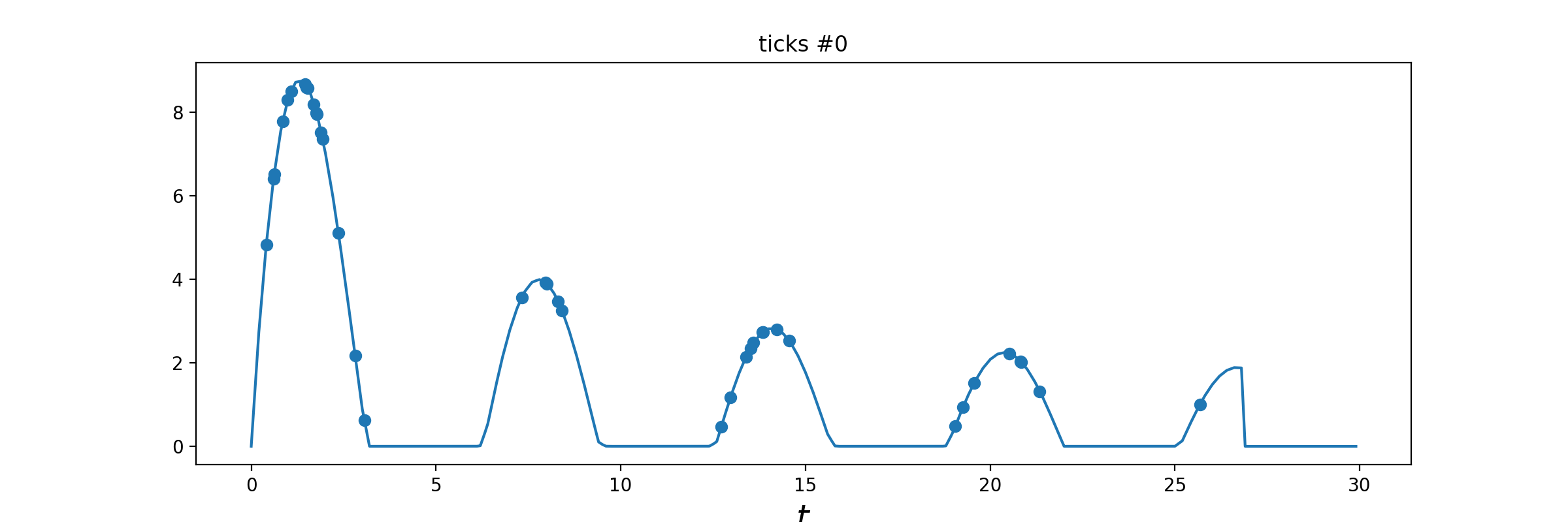 in_poi = SimuInhomogeneousPoisson([tf], end_time=run_time, verbose=False)